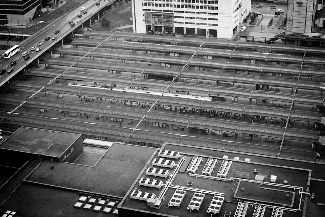 I remember sneaking into the elevator, waiting inside it until it began traveling upwards, then discretely using the service stairs which smelled like laundry detergent. When I arrived on the very top floor I discovered it was a gym, I tried my best to slalom between the security cameras and the fitness machines. The panorama was amazing but the train station took my attention; I spent some time looking at all these small commuters waiting for their trains that will take them home after a long day at work.